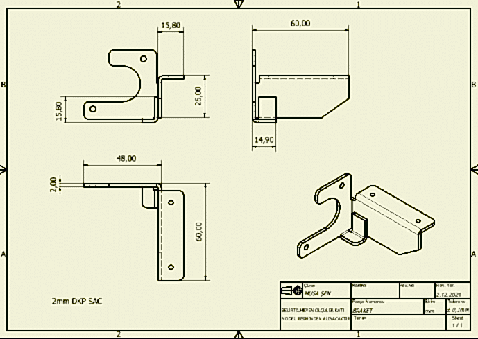 3 boyutlu tasarımların üretiminde ve arşivlendirilmesinde kullanılmak üzere teknik resim dökümanı oluşturulması.